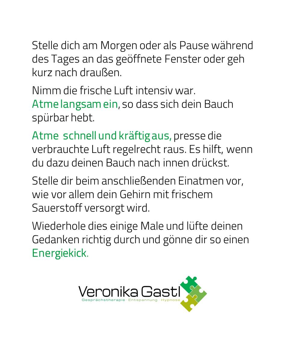 Hier hilft es ordentlich durchzulüften, frischen Sauerstoff zu tanken und den alten ordentlich ausatmen.