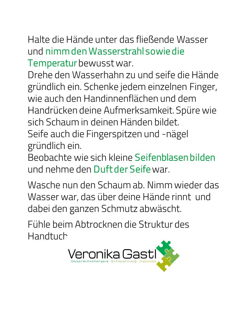 Nutzte diese Zeit und konzentriere dich lediglich auf das Hände waschen umso deine Gedanken zur Ruhe zu bringen.