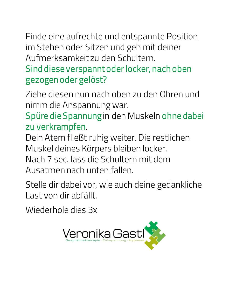 In Verbindung mit den inneren Bildern, die Last von den Schultern fallen zu lassen, hilft dir diese Übung ganzheitlich.
