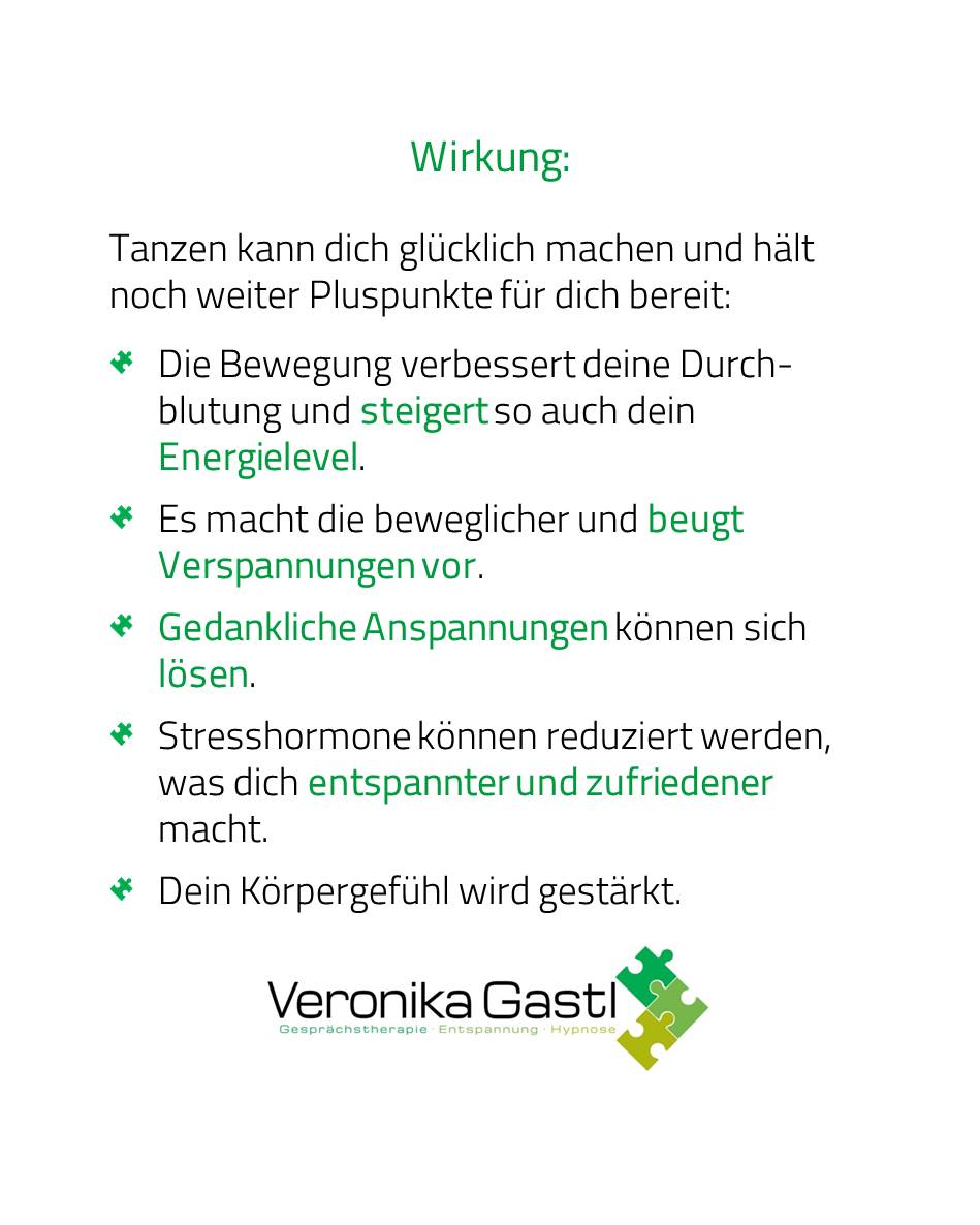 Hierfür reicht auch schon eine kleine Tanzeinheit von wenigen Minuten.